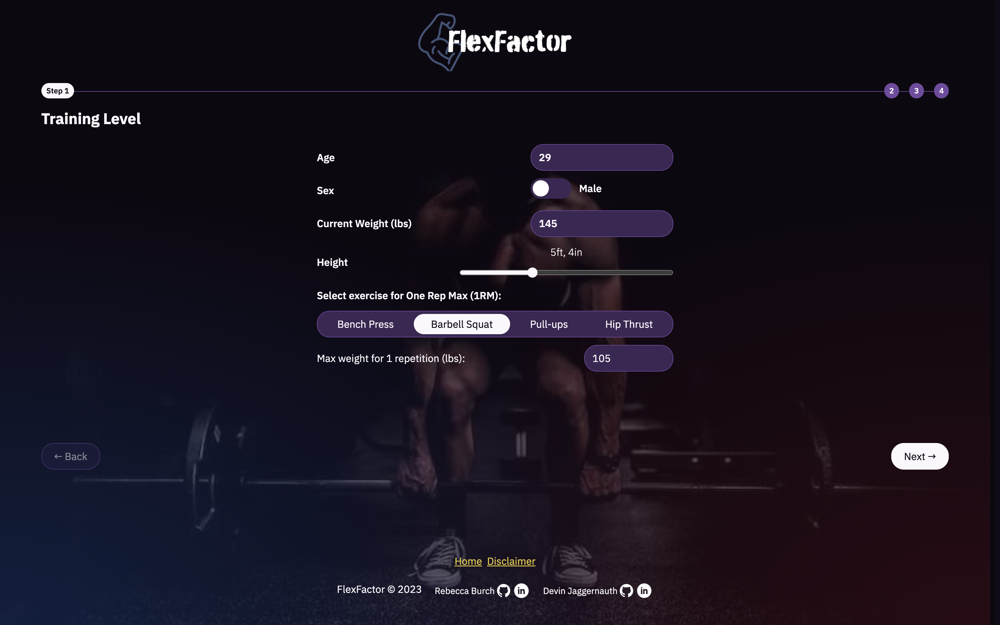 FlexFactor estimates how long it takes to gain muscle mass based on current fitness level. This project is in active development, so feel free to follow our progress on github at FlexFactor-V2 for a peek at the latest features.